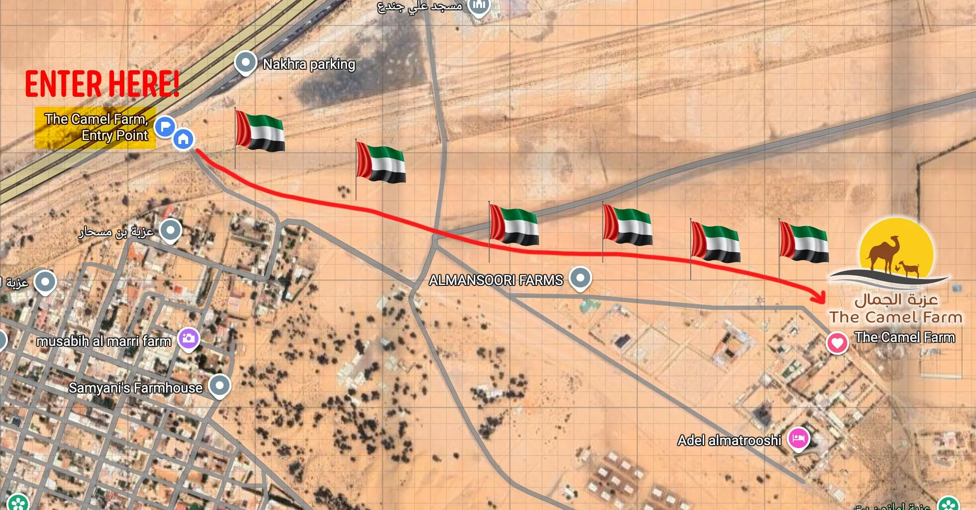Once reached, follow the UAE flags from there to the Farm (around 1km)